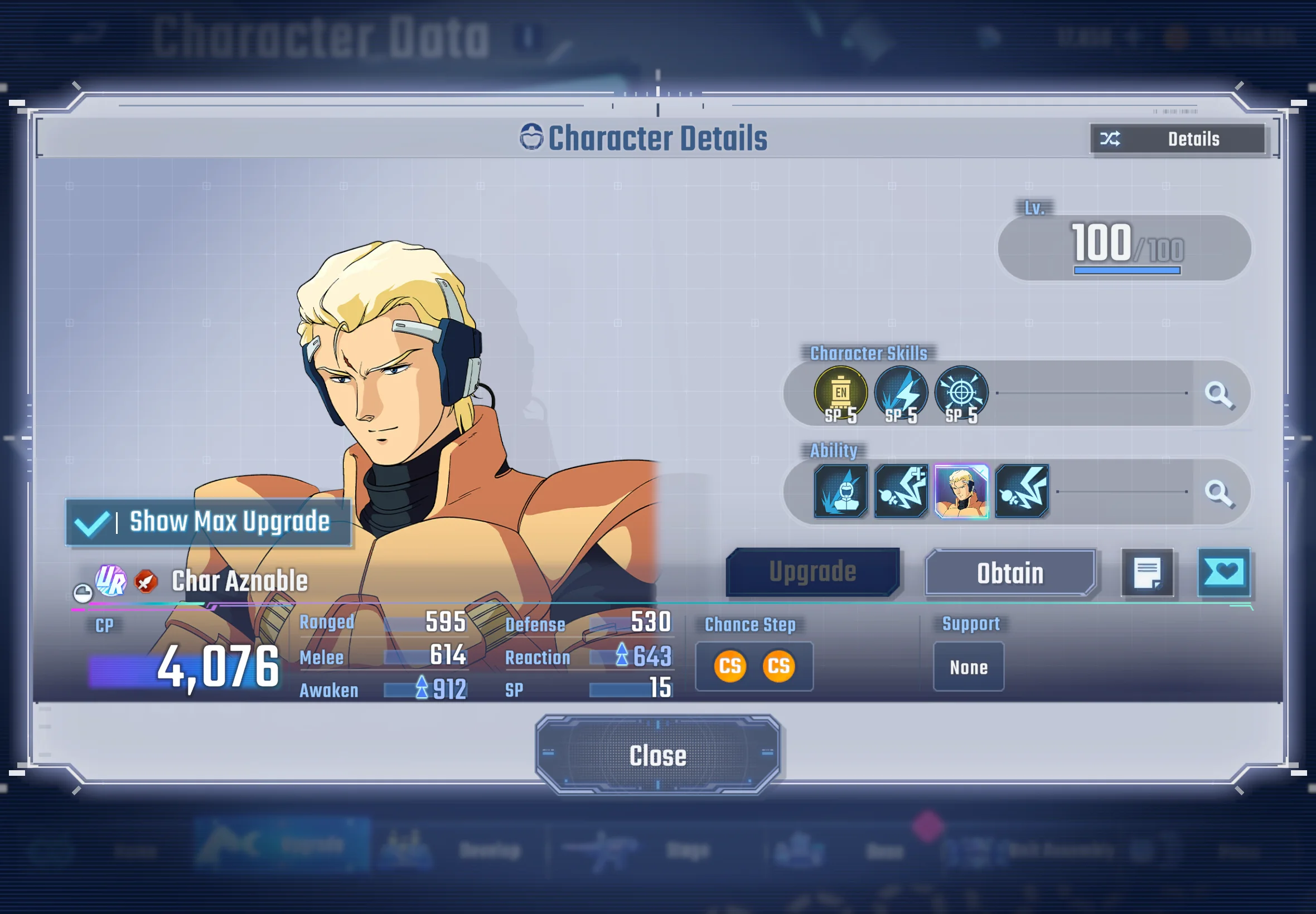 | | Has a range 5 weapon that reduces enemy DEF, helping your main damage dealers hit harder. Also has another range 5 weapon that makes enemies take increased damage from Special weapons, enabling strong combo setups. Piloted by Amuro Ray, a support-oriented pilot with a rare skill that boosts attack power, which is uncommon among support pilots.